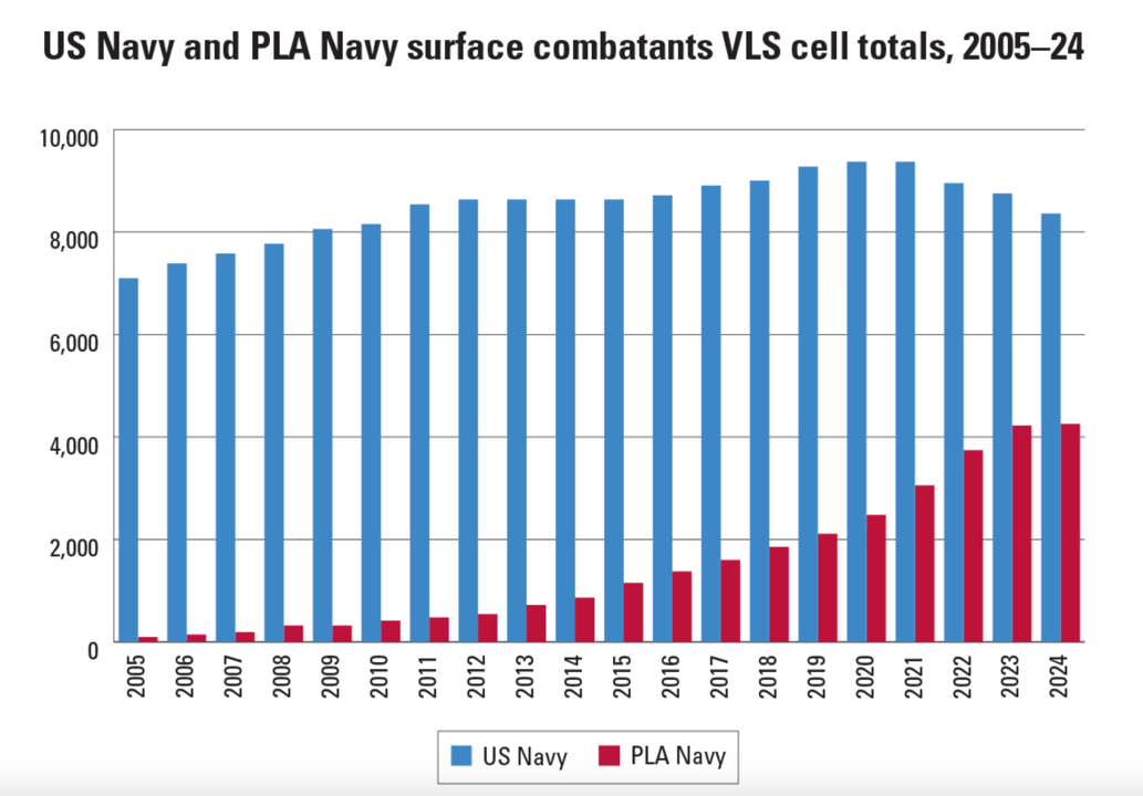En todo caso, pareciera que Occidente ya ha perdido, incluso antes de empezar, la carrera mundial de la construcción naval, tanto militar como civil. En el primer caso (militar), un reporte de la Oficina de Inteligencia Naval de EEUU da cuenta de que, en caso de continuar la tendencia actual, la marina de China tendrá al menos 450 buques operativos hacia 2035, contra los 320 de la Armada americana. Si bien es cierto que, para algunos analistas, cantidad no es lo mismo que calidad, el desarrollo de sistemas de alta tecnología, sensores y armamento por parte de la PLAN no puede soslayarse. De hecho, y en aras de contar con una comparativa más adecuada, Johannes Fishbach ha graficado (en su trabajo para el IISS), una tabla que contrapone el número de lanzadores verticales de misiles, tanto de buques de la US Navy como de China, y el resultado es sumamente interesante: si bien los americanos mantienen la delantera en cuanto a dichos sistemas, ya se han estancado; los chinos, por su parte, se encaminan a igualar, y en su caso sobrepasar, dicha capacidad en la siguiente década.